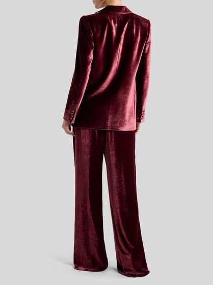 Straight-cut jacket in silk-blend velvet enhanced by metal buttons with a raised Pegaso logo. The inner lining features a striped pattern.