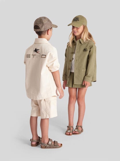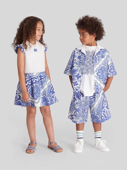 Tauchen Sie ein in die faszinierende Welt der Jungen-Mode von ETRO, wo Stil und Qualität aufeinandertreffen und zu origineller Eleganz verschmelzen. Unsere exklusive Kollektion für Jungen ist durch markante Paisley-Prints, raffinierte Pegaso Stickereien und hochwertige Jacquardstoffe geprägt. Durchstöbern Sie eine einzigartige Palette an Bekleidung, Accessoires und Schuhen, bei der die Paisley-Prints den Kleidungsstücken als markantes ETRO Symbol einen Hauch von Raffinesse und Charakter verleihen, während die Pegaso Stickereien für einen verspielten und einzigartigen Touch sorgen. Sorgfältig ausgewählte Jacquardstoffe bieten luxuriösen und dauerhaften Komfort und garantieren, dass sich Ihre Jungs bei jedem Anlass wohlfühlen. Wählen Sie ETRO, die Marke, die italienische Handwerkstradition mit zeitgemäßem Design vereint. Jedes ETRO Kleidungsstück für Jungen von 4 bis 10 Jahren ist zur Schaffung unvergesslicher Looks gedacht, wo Komfort harmonisch mit edler Ästhetik verschmilzt. Schenken Sie Ihren Jungs die Möglichkeit, ihren einzigartigen Stil mit der raffinierten und zeitlosen Mode der Maison zum Ausdruck zu bringen.