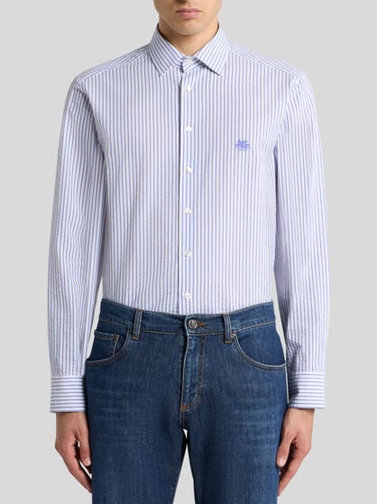 Transform your wardrobe with ETRO men’s clothing. Explore a wide selection of garments, from casual to elegant, to adapt to any occasion. Silk and cotton shirts with stripes or archive prints are perfect for an informal look to combine with a bomber jacket or a sophisticated leather jacket for an added touch of class. If you are looking for uncompromising elegance, check out ETRO’s double-breasted jackets which create an impeccable outfit when combined with trousers with tucks or a side band. Sweatshirts and jumpers embellished by prints and embroidery are perfect for sporty looks; wear them with jeans or velvet trousers for a touch of sophistication at any time of day. Choose from our selection for a versatile wardrobe which blends casual and elegant clothing, ensuring a unique style for every occasion always. Discover our range of sporty clothing and elegant homewear.