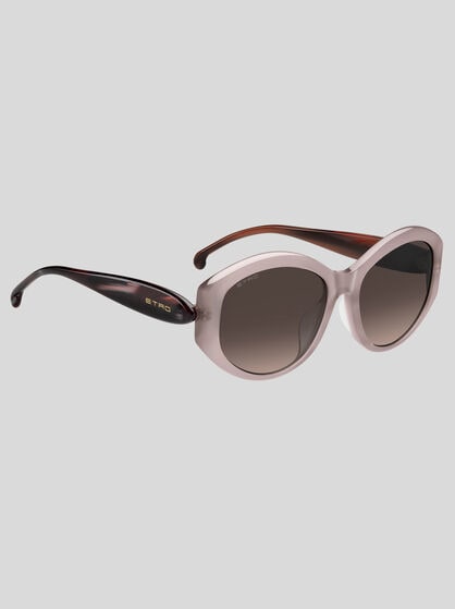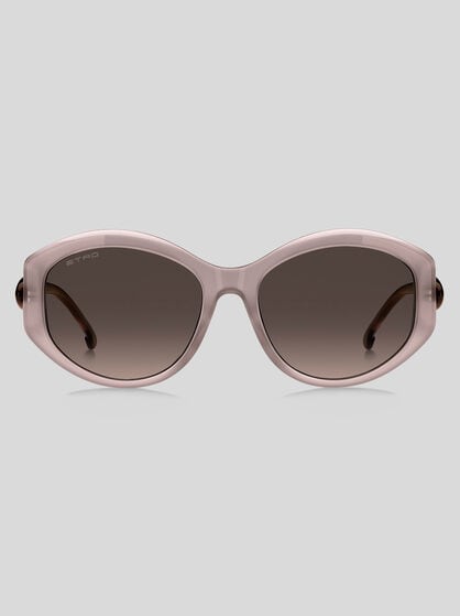 Explore the world through new eyes with ETRO women's sunglasses. The new collection offers cat eye butterfly glasses embellished by Paisley designs that define ETRO's distinctive style. Choose rectangular or round lenses, each pair is designed to offer clear and comfortable vision. To complete your look, pair them with an elegant silk scarf with the same Paisley pattern and combine with a jacquard fabric bag. The versatility of the frames allows you to try different combinations: wear the glasses with a long silk dress for an ultra-chic look or with a casual outfit for a more relaxed mood. The frames are available in many contrasting colours and styles to express your personality. Match the ETRO sunglasses with a necklace and pendant earrings with Pegaso for an additional touch of elegance. The ETRO logo, with the legendary winged horse, adds a distinctive touch of allure to your sunglasses.