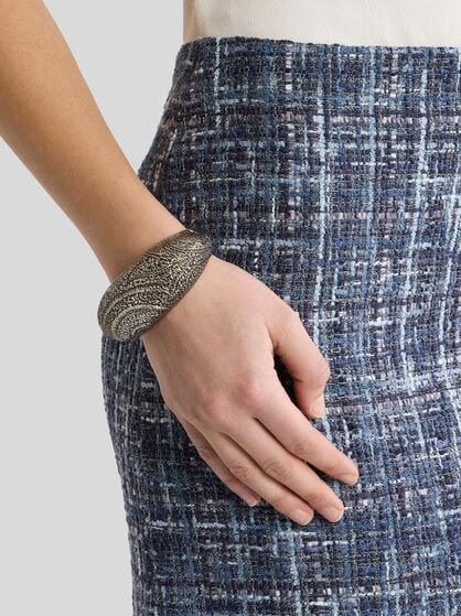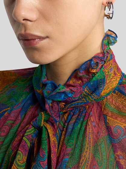 Jetez un œil à l’élégance unique des bijoux ETRO, où la beauté naturelle s’exprime à travers des boucles d’oreilles qui capturent les formes délicates de la nature ainsi que des maxi-pendentifs rehaussés de détails complexes. Les colliers ras de cou dégradés, avec leur design envoûtant enrichi de médailles et de pendentifs, se distinguent par leur style raffiné qui sublime chaque tenue d’une touche d’élégance intemporelle. Portez les boucles d’oreilles inspirées de la nature sur des vêtements aux tons clairs ou neutres, comme une robe ou une blouse pastel. Les maxi pendentifs aux broderies précieuses peuvent être portés avec une robe monochrome foncée ou avec une simple chemise pour les mettre en valeur. Les colliers ras de cou sont parfaits avec des robes simples et élégantes, comme une robe fourreau ou un chemisier décolleté. Quant aux bracelets brodés de pierres, il convient de les associer à une robe élégante mais minimaliste, afin de permettre au bracelet de scintiller et de devenir la pièce forte du look.