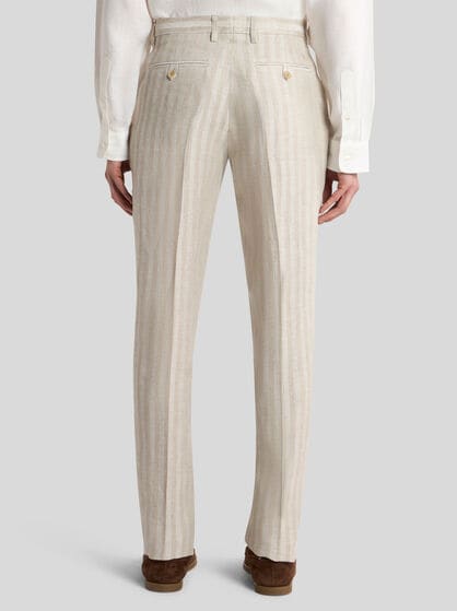 ETRO Herrenanzüge sind aus hochwertigen Stoffen gemacht, wie kostbare Wolle, Seide und eleganter Samt in besonders sorgfältiger Verarbeitung, um den raffiniertesten Ansprüchen gerecht zu werden. Blaue Anzüge verkörpern zeitlose Eleganz und Klasse, die Nadelstreifmodelle zeigen sich mit einer modernen Silhouette und tadelloser Passform dank der hochwertigen Stoffe, die zur Fertigung verwendet werden. Diese Anzüge sind die perfekte Wahl für Geschäftstreffen, formelle Anlässe oder elegante Abende und können mit eleganten Wollmänteln oder Trenchcoats aus Paisley Funktionsgewebe kombiniert werden, um Ihren Look mit Stil abzurunden. Die ETRO Herrenanzugskollektion ist eine Zelebration der Kunst der Herrenmode. Sie bietet eine umfangreiche Auswahl an Optionen, die sich an jeden Anlass anpassen und die Leidenschaft für die perfekte Schneiderkunst der Marke widerspiegeln.