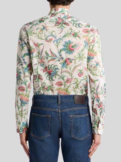 Transform your wardrobe with ETRO men’s clothing. Explore a wide selection of garments, from casual to elegant, to adapt to any occasion. Silk and cotton shirts with stripes or archive prints are perfect for an informal look to combine with a bomber jacket or a sophisticated leather jacket for an added touch of class. If you are looking for uncompromising elegance, check out ETRO’s double-breasted jackets which create an impeccable outfit when combined with trousers with tucks or a side band. Sweatshirts and jumpers embellished by prints and embroidery are perfect for sporty looks; wear them with jeans or velvet trousers for a touch of sophistication at any time of day. Choose from our selection for a versatile wardrobe which blends casual and elegant clothing, ensuring a unique style for every occasion always. Discover our range of sporty clothing and elegant homewear.