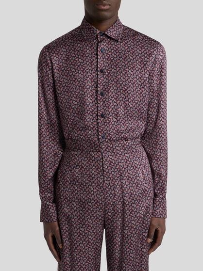 Transform your wardrobe with ETRO men’s clothing. Explore a wide selection of garments, from casual to elegant, to adapt to any occasion. Silk and cotton shirts with stripes or archive prints are perfect for an informal look to combine with a bomber jacket or a sophisticated leather jacket for an added touch of class. If you are looking for uncompromising elegance, check out ETRO’s double-breasted jackets which create an impeccable outfit when combined with trousers with tucks or a side band. Sweatshirts and jumpers embellished by prints and embroidery are perfect for sporty looks; wear them with jeans or velvet trousers for a touch of sophistication at any time of day. Choose from our selection for a versatile wardrobe which blends casual and elegant clothing, ensuring a unique style for every occasion always. Discover our range of sporty clothing and elegant homewear.