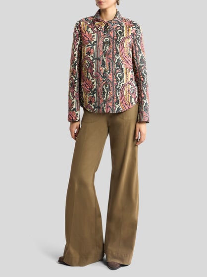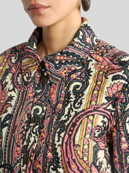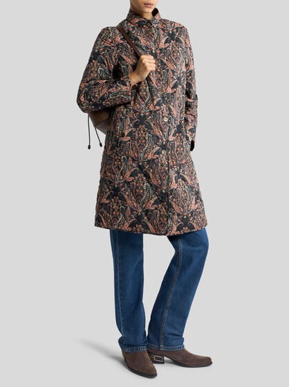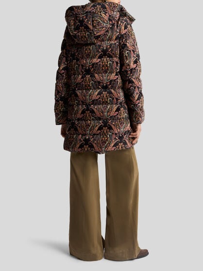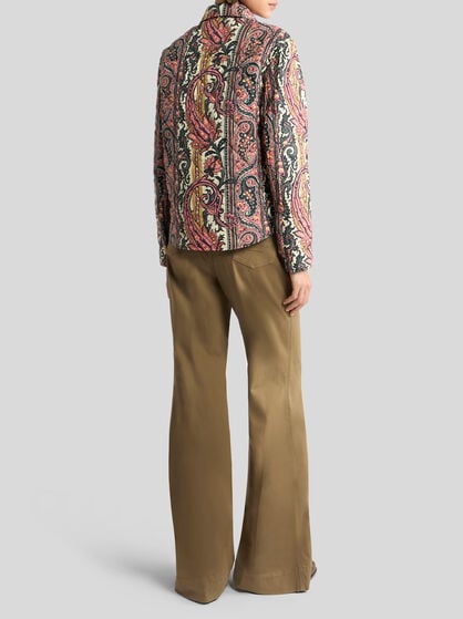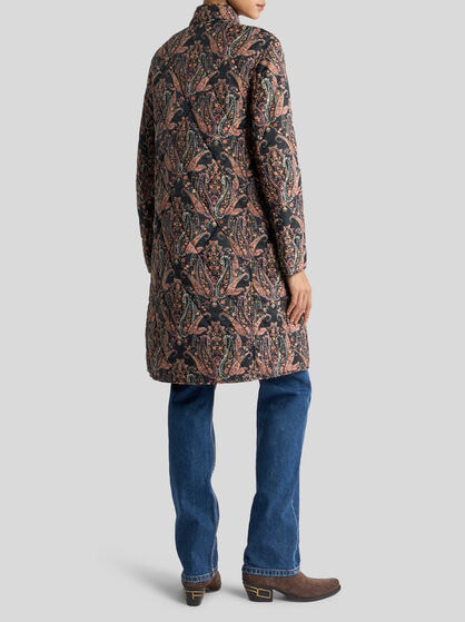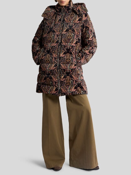 Les grosses pièces ETRO se démarquent par leur originalité et leur style unique, en accompagnant le passage des saisons. La collection présente une variété d’options, dont de généreux manteaux en maille très douce, laine et cachemire luxueux qui cohabitent en harmonie avec des pardessus en soie aux lignes féminines et élégantes. Sahariennes, gilets et blousons sont rehaussés de détails comme franges et broderies ainsi que les motifs Paisley caractéristiques, en tissu jacquard. Chaque grosse pièce ETRO peut être portée par-dessus des vestes sartoriales, assortie à des robes longues ou des chemises avec shorts. La collection comprend un large éventail de grosses pièces pour la femme moderne, dont manteaux, trenchs à porter avec des ensembles blazer et pantalon, des bombers et des doudounes, chacun conçu pour répondre à des exigences de confort et de style.