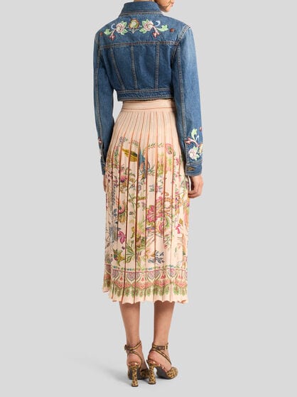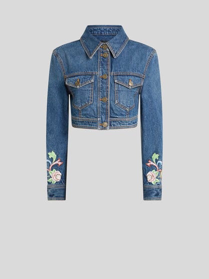 La linea di abbigliamento denim da donna di ETRO incarna la celebrazione delle ultime tendenze, abbracciando la silhouette moderna e accattivante. Tessuti Jacquard stagionali, stampe iconiche e il classico motivo Paisley si uniscono in una collezione sempre al passo con i tempi, perfetta per esprimere la tua personalità unica. La gamma comprende jeans, giacche, gonne e camicie in denim da donna, progettati per offrire comfort e stile senza sforzo. Esplora la vasta selezione di abbigliamento in denim, che include anche giacche e giubbotti. Con ETRO, l'arte di indossare il denim diventa semplice e affascinante.