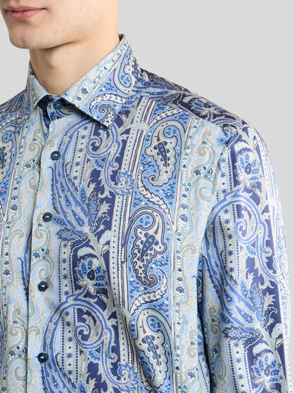 La collezione di camicie uomo di ETRO rappresenta una fusion tra tradizione e modernità. Le camicie a righe due tessuti sono l'incarnazione perfetta dello stile ETRO e si prestano magnificamente all'abbinamento con bermuda e espadrillas. D'altra parte, le camicie in seta con fantasie floreali ti accompagneranno con classe nelle tue giornate di lavoro abbinate alle giacche di collezione. Se invece cerchi un look più casual, potrai scegliere tra i modelli alla coreana o le camicie slim fit. Le camicie in lino sono un vero must-have per il guardaroba estivo, mentre le camicie a maniche corte aggiungono un tocco di freschezza al tuo stile. Se desideri giocare con le proporzioni, opta per una camicia oversize da abbinare a un paio di jeans in denim jacquard. Le camicie uomo ETRO sono progettate per esaltare la tua personalità e aiutarti a creare uno stile unico.