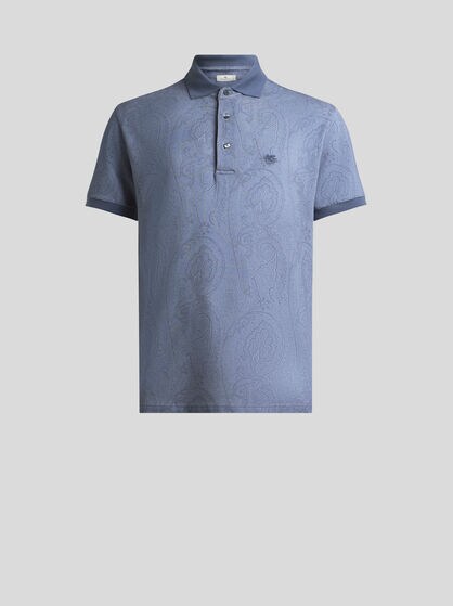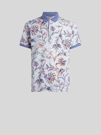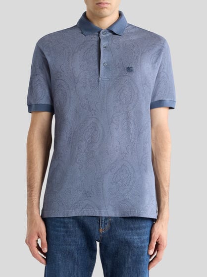 ETRO men’s polo shirts blends contemporary style with absolute versatility. Polo shirts with leafy flowers, floral polo shirts, Paisley polo shirts and printed ones with the most emblematic designs of the collection portray the mood of the new ETRO man. Whether you are searching for a soft light jersey polo shirt for summer days or a more structured piquet polo shirt for a more formal look, the collection includes sophisticated models and cuts. ETRO men’s polo shirts are an ideal choice for those looking for a touch of elegance and sophistication in their wardrobe to wear with sweatshirts, outerwear in wool cloth, leather jackets but also trench coats. The refinement of the details and the quality of the materials make ETRO polo shirts stand out. Choose your perfect men’s polo shirt whether you are looking for a casual look to wear with chino trousers or a more sophisticated one, our collection of men’s polo shirts offers infinite options to express your personality and to create your own unique style.