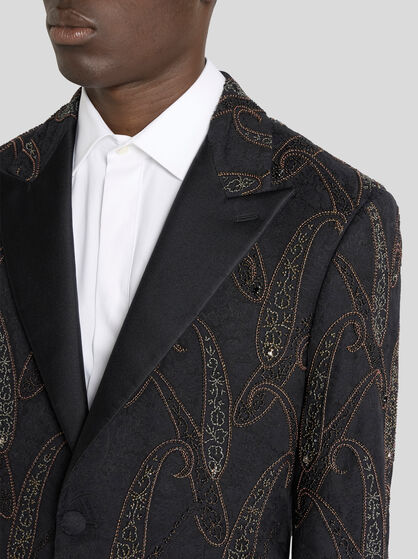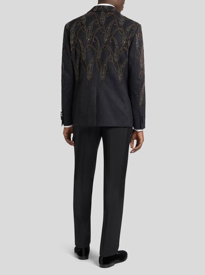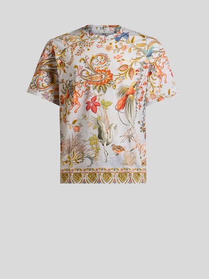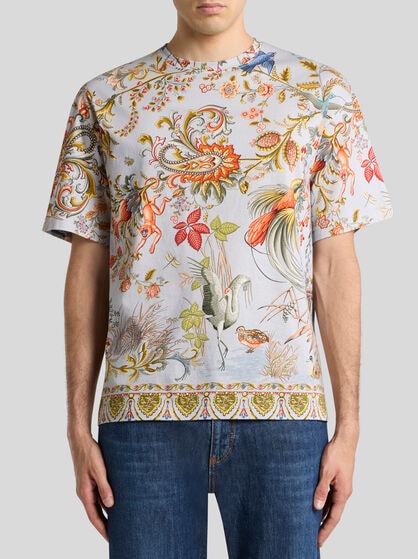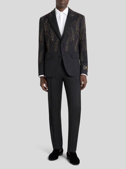 Transform your wardrobe with ETRO men’s clothing. Explore a wide selection of garments, from casual to elegant, to adapt to any occasion. Silk and cotton shirts with stripes or archive prints are perfect for an informal look to combine with a bomber jacket or a sophisticated leather jacket for an added touch of class. If you are looking for uncompromising elegance, check out ETRO’s double-breasted jackets which create an impeccable outfit when combined with trousers with tucks or a side band. Sweatshirts and jumpers embellished by prints and embroidery are perfect for sporty looks; wear them with jeans or velvet trousers for a touch of sophistication at any time of day. Choose from our selection for a versatile wardrobe which blends casual and elegant clothing, ensuring a unique style for every occasion always. Discover our range of sporty clothing and elegant homewear.