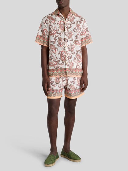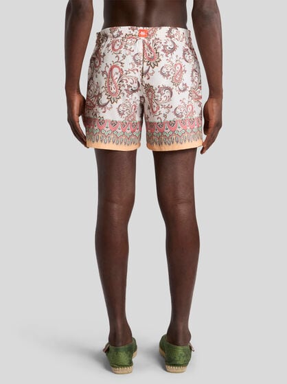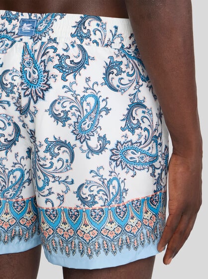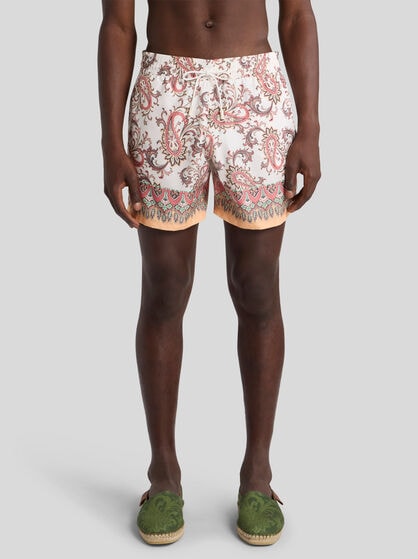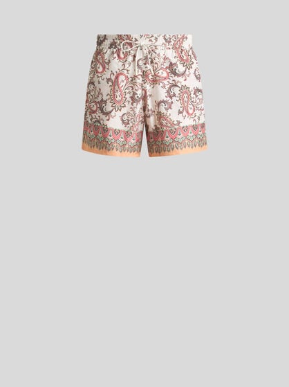 ETRO swimwear is synonymous with style and quality, guaranteeing an impeccable look on the beach or the pool. ETRO men’s swimwear offers a variety of options for all tastes. ETRO beach fashion for men is designed to satisfy every man’s need for style and comfort. Check out our men’s beach bags to complete your seaside look. ETRO beach trousers are another option to consider for a flawless beach look. Made of high quality materials and available in a variety of styles and colours, these trousers are perfect for those looking for comfort and style during the summer holidays. Elegant beach trousers or trendy beach accessories, everything you need to complete your seaside look.