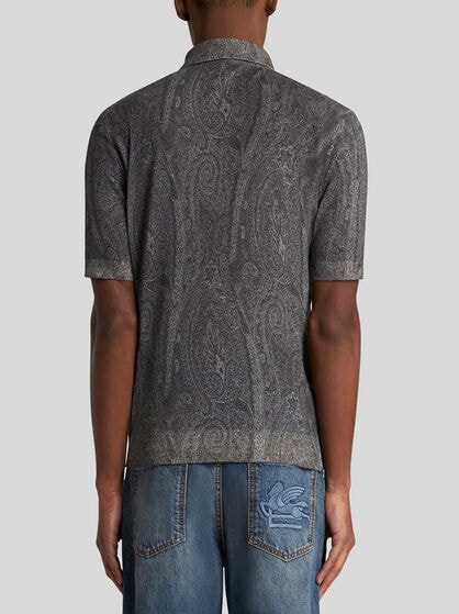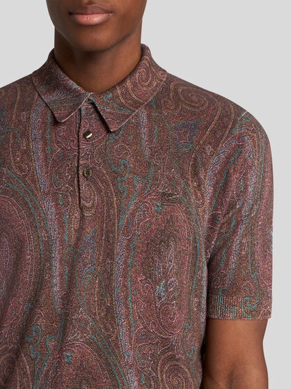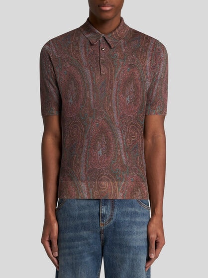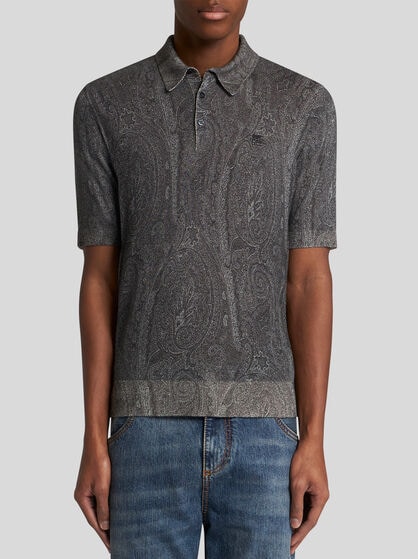 ETRO men’s polo shirts blends contemporary style with absolute versatility. Polo shirts with leafy flowers, floral polo shirts, Paisley polo shirts and printed ones with the most emblematic designs of the collection portray the mood of the new ETRO man. Whether you are searching for a soft light jersey polo shirt for summer days or a more structured piquet polo shirt for a more formal look, the collection includes sophisticated models and cuts. ETRO men’s polo shirts are an ideal choice for those looking for a touch of elegance and sophistication in their wardrobe to wear with sweatshirts, outerwear in wool cloth, leather jackets but also trench coats. The refinement of the details and the quality of the materials make ETRO polo shirts stand out. Choose your perfect men’s polo shirt whether you are looking for a casual look to wear with chino trousers or a more sophisticated one, our collection of men’s polo shirts offers infinite options to express your personality and to create your own unique style.