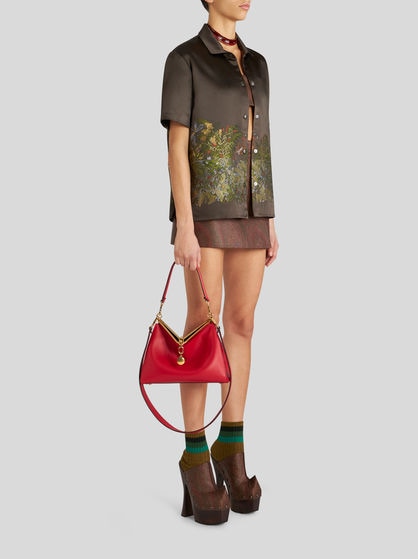The new ETRO Vela Bag collection is a synonym of elegance and exclusive design. Created by Marco De Vincenzo, the Vela bag enchants with its aerodynamic shape, V fastening and fine calfskin leather. Choose from a selection of classic shades or more pop-colours.