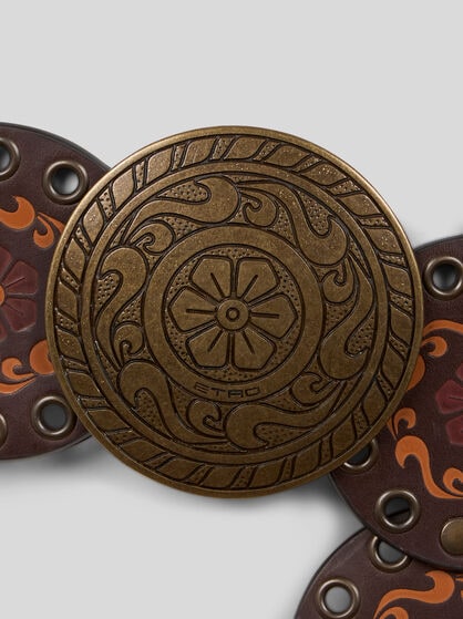 Add a touch of sophisticated versatility to your wardrobe with ETRO’s elegant women's belts. From the timeless simplicity of smooth, reversible leather belts, perfect for a clean and minimalist look, to the lively elegance of the Paisley pattern that conveys natural and creative elegance. The woven belts offer an informal but chic option, perfect for wearing with jeans or summer dresses. Whether you prefer handworked leather or the unique charm of embroidered fabric details, ETRO belts are the perfect accessory to flaunt your personal style in a distinctive and sophisticated way. Add a touch of class to any outfit with a belt with the monogram print or mesh worked metal. Designed to enhance your personality, the versatile ETRO belt collection accentuates the casualness of everyday looks but also refined evening events.