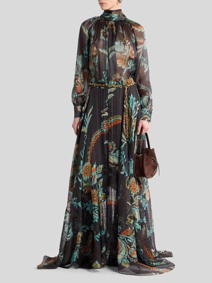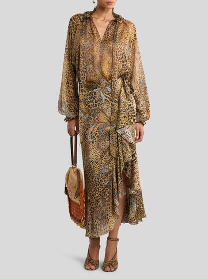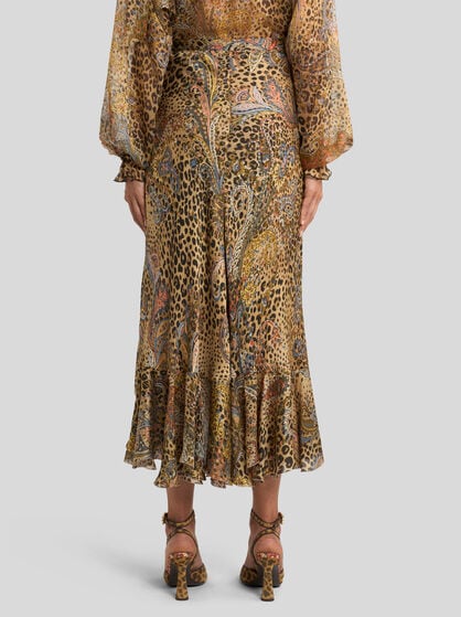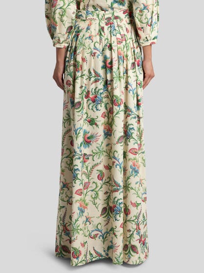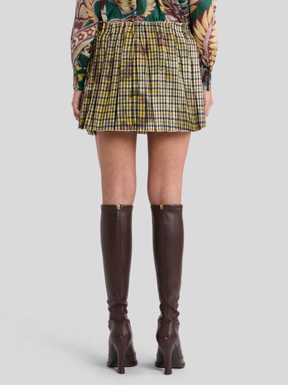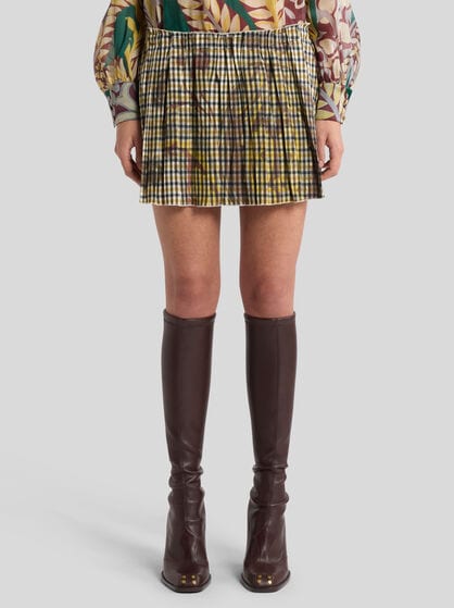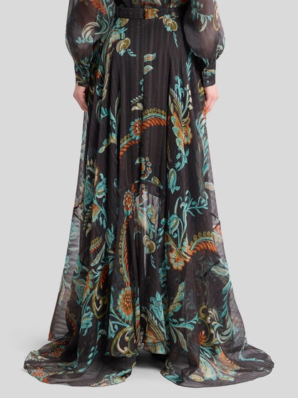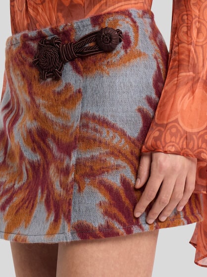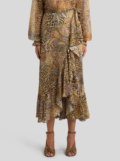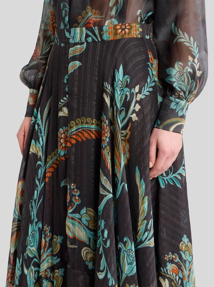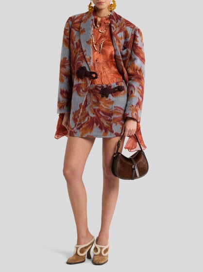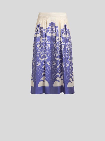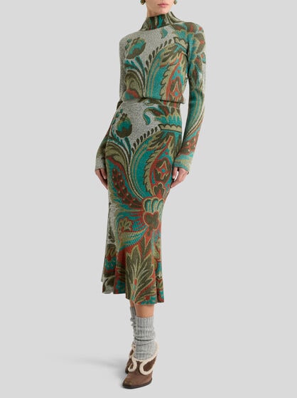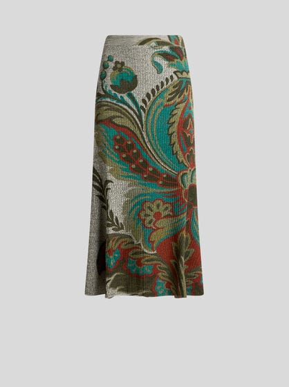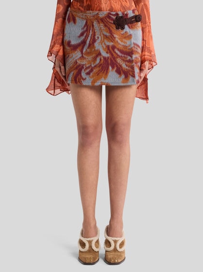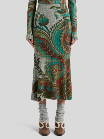 The ETRO skirt collection comes in a vibrant mix of fabrics, embroidery and patterns. ETRO wrap models are perfect for daywear while the jacquard weave, the elegant A-line skirts are suitable for the evening. Floral prints on silk and velvet adorn both long and mini skirts, giving the female figure a slender charm. The mini skirts feature Paisley patterns making them perfect for any occasion, whether it’s a day in the city or a ceremony. If you are looking for the perfect skirt for a wedding, long skirts offer truly alluring options. Shop a short satin skirt with ruche details for a touch of glamour. ETRO A-line skirts are a trendy alternative for people looking for versatility in their wardrobe but if you prefer a casual and fashionable style, the floral and denim skirts are ideal.