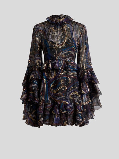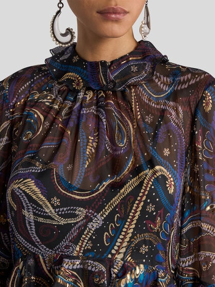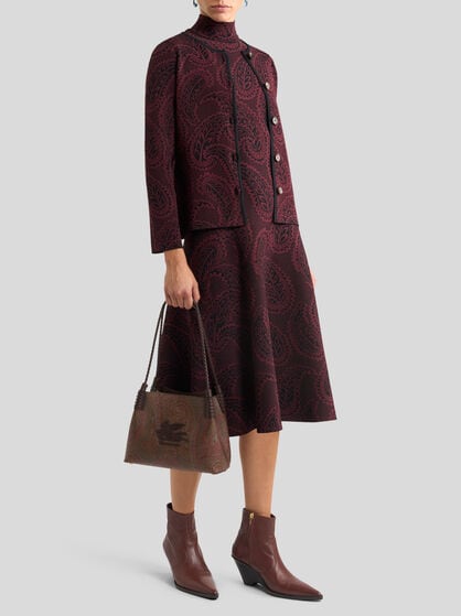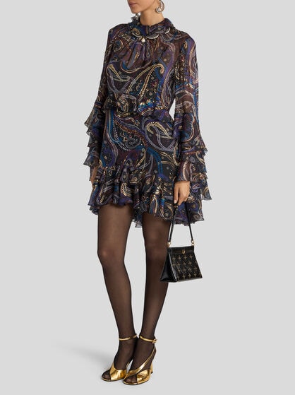 The ETRO women’s clothing collection encapsulates elegance and feminine style. Jacquard jackets in high quality fabrics are iconic in style with a feminine cut that highlights the silhouette, guaranteeing comfort and sophistication. The silk shirts with sinuous lines and well-finished details are coloured by Paisley designs while the palazzo trousers, with their width and fluid design, offer a feeling of lightness and style. Long dresses with floral prints capture the Maison’s quintessential style while short or wrap skirts featuring Pegaso embroidery add a touch of vivacity and dynamism to the wardrobe. Coats and outerwear with their elegant, contemporary design are a must-have. The Maison carefully selects high quality fabrics such as silk, cotton, linen, wool and cashmere. These fabrics make each garment in the collection an investment in style that lasts over time.