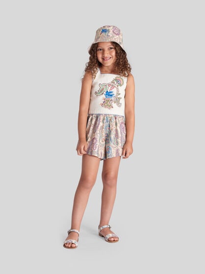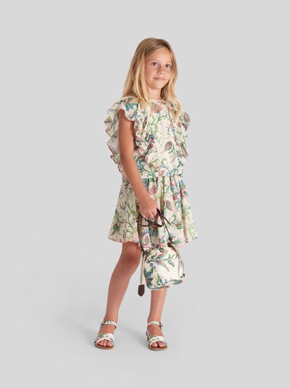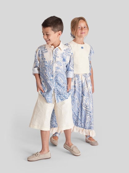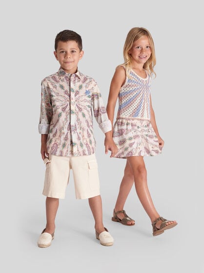 Discover the Girls collection, where elegance and charm meet. Our refined selection of clothing for girls from 4 to 10 years old is designed to make the little ones shine on every occasion. Explore our selection of clothing for girls, perfect for special occasions. From floral dresses that emanate joy to party dresses that make you dream. Precious fabrics such as silk and cotton blend with eye-catching designs. T-shirts printed with floral Paisley designs, skirts, Bermuda shorts and refined knitwear, our collection is designed for girls who want to express their personality through clothing. Choose from playful prints and vibrant colours for truly natural and trendy styles. Complete your little girl's look with our adorable accessories.