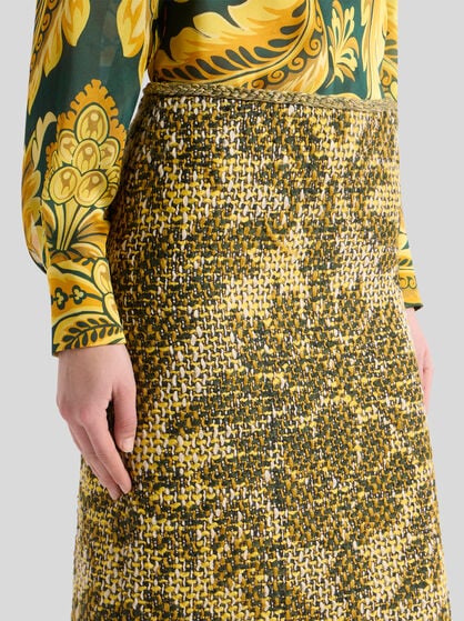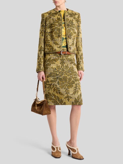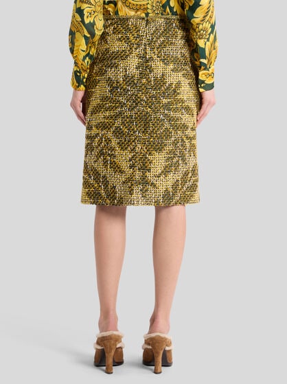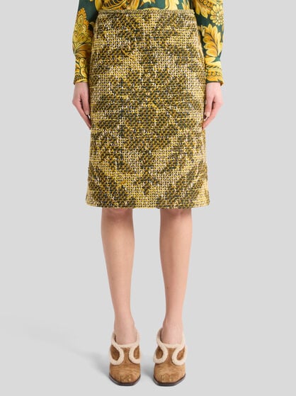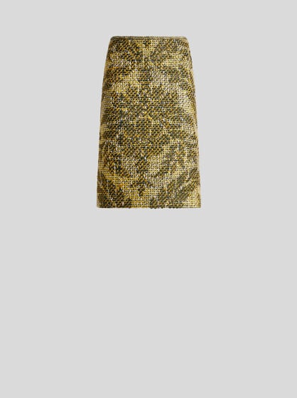 ファブリック、刺繍、モチーフの組み合わせがルックを華やかに演出するスカート。ラップスカートはデイウェアに、ジャカードのエレガントなAラインスカートはイブニングに。ロングとミニをお選びいただける、花柄プリントを配したシルクとベルベットのスカートはスレンダーなシルエットが叶います。ペイズリーをあしらったミニスカートは街でのショッピングやセレモニーなど様々なシーンに活躍します。ウェディングの参列にはロングスカートを。フリルのディテールがあしらわれたショート丈のサテンスカートはルックを艶やかに彩ります。Aラインのスカートはワードローブに新しいスタイルを加えるトレンディな1着。カジュアルでファッショナブルなスタイルには花柄やデニムのスカートがパーフェクト。
