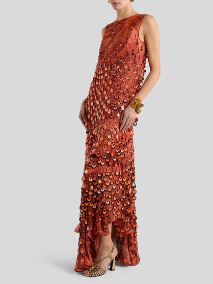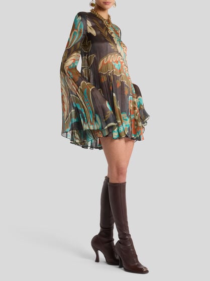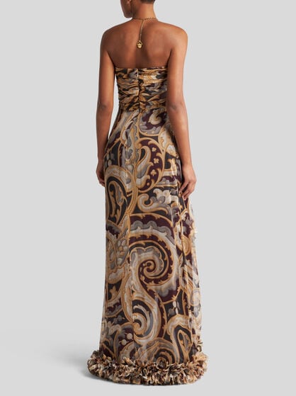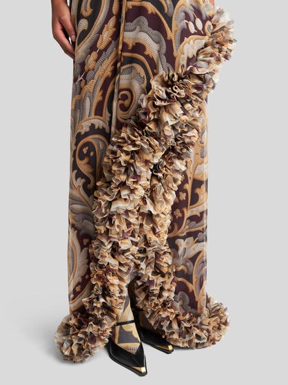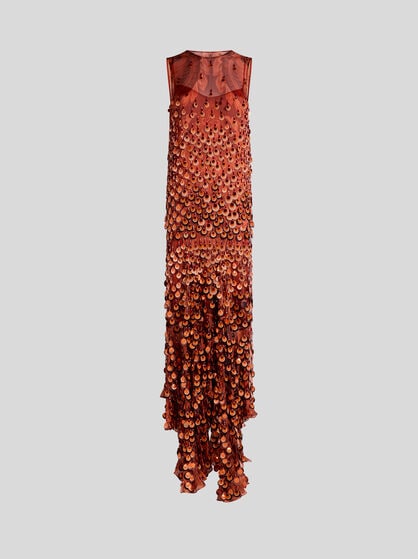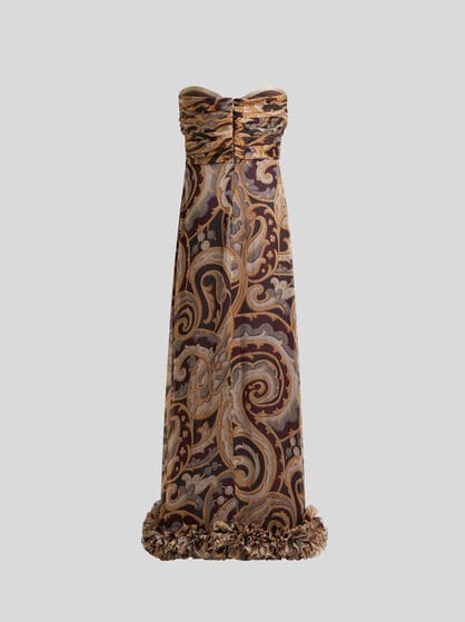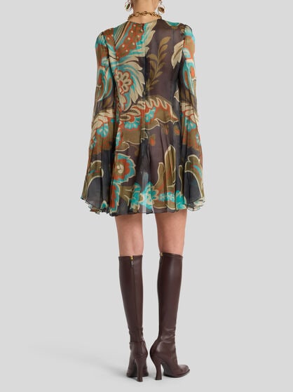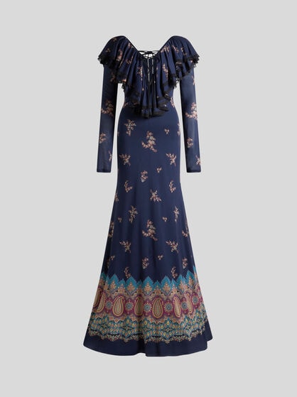 フェミニンな美しさを讃えたエトロのドレスコレクション。シルクやコットンなど上質な素材で仕立てられたドレスは、フローラルプリント、ジャカード、パッチワーク、そしてアイコニックなペイズリーのモチーフが巧みにあしらわれ、洗練されたシックなドレスが揃います。特別な日を彩るにふさわしいフローラルプリントのロングドレス、フリルをあしらったシャツドレスにはエレガントなタッチが添えられ、アシンメトリーなカッティングのキモノドレスなど、様々なモデルが揃います。セレモニードレス、ジャンプスーツ、イブニングドレス。あらゆる女性の非日常を彩るエレガントなドレスにはクラシカルでエレガントなシースドレスやテーラードスーツなど、バリエーション豊富なセレクションをご覧頂けます。サトゥルノやミニヴェラなどお気に入りのアクセサリーと合わせてお楽しみください。