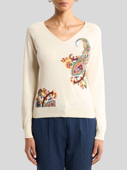 革新的なスタイルを彩り豊かに表現したニットウェアのコレクション。カシミアやモヘア、ウールのセーターは丁寧に作られ、極上の着心地とタイムレスなスタイルを兼ね備えます。ジャカードのカーディガンやセーターはアート作品のように精巧で、ドレスやジャカードのデニムにもパーフェクトに調和します。フリンジや刺繍、見事なインターシャがあしらわれたデザインも登場。ハイネックのセーターはブランドのシンボルであるフローラルペイズリープリントをあしらい、仕立ての良いパンツとのコーディネートに最適です。ニットジレはワードローブを新しい魅力をもたらし、セーターと合わせてこの上ない着心地に包まれます。プリントや刺繍のディテールをあしらったジャカードのカーディガンはあらゆるシーンに活躍します。ルックに個性を添える洗練された素材と色彩のニットウェアをお楽しみください。