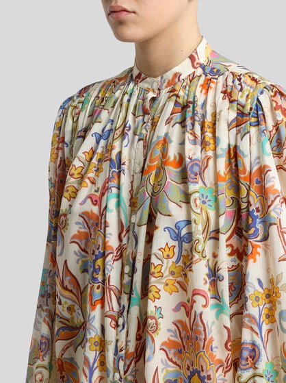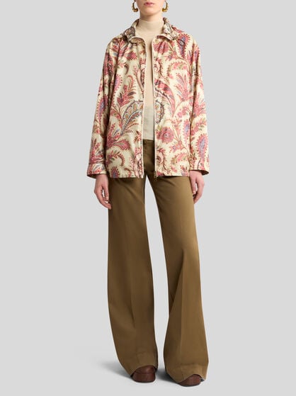 エトロのウィメンズコレクションはエレガンスとフェミニンを融合したスタイル。上質なジャカードで仕立てたアイコニックなジャケットは、シルエットを際立たせるフェミニンなカッティングによる着心地の良さと洗練されたスタイルが魅力です。しなやかなラインと美しいディテールが特徴のシルクシャツはペイズリーで彩られ、流れるようなデザインのパラッツォパンツは軽やかなスタイルを演出します。フローラルプリントのロングドレスはメゾンの真髄ともいえるスタイルに、ペガソの刺繍をあしらったミニスカートやラップスカートはワードローブにフレッシュなムードを添えます。エレガントでコンテンポラリーなデザインのコートやアウターウェアはマストアイテム。厳選されたシルク、コットン、リネン、ウール、カシミアなど上質な素材で仕立てられたコレクションは、長くご愛用頂けるアイテムばかりです。