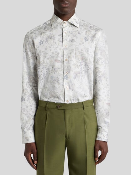 エトロのメンズウェアがワードローブを一新します。カジュアルからエレガントまで、あらゆるシーンに対応する幅広いセレクションをご覧ください。ストライプやアーカイブプリントのシルクやコットンのシャツは、ボンバージャケットや洗練されたレザージャケットと組み合わせて、カジュアルなスタイルをリュクスに仕上げます。ダブルブレストのジャケットとタックやサイドラインの入ったパンツとのコーディネートは、パーフェクトなエレガンスを表現します。プリントや刺繍をあしらったスウェットシャツやセーターは、スポーティなルックに:ジーンズやベルベットのパンツがいかなるシーンにもふさわしい洗練されたルックに仕上げます。カジュアルとエレガントを融合させたワードローブは、どのようなシーンでもあなたの個性を表現するルックに。スポーティなウェアもエレガントなホームウェアも見つかるエトロのコレクションをお楽しみください。