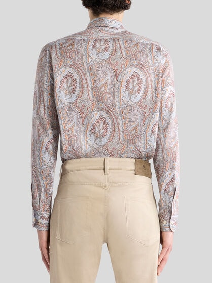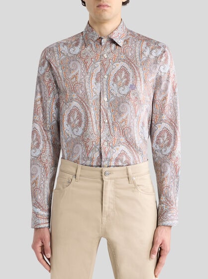 伝統と現代性が融合したシャツのコレクション。2種類のファブリックを組み合わせたストライプシャツは、バミューダショーツやエスパドリーユと合わせたら、パーフェクトなエトロスタイルに。フローラルプリントのシルクシャツにジャケットを合わせて、ウィークデーのスタイルに彩りと華やかさを添えます。よりカジュアルなシーンにはマンダリンカラーやスリムフィットのシャツを。リネンシャツは夏のワードローブに欠かせないアイテム、半袖シャツはルックに爽やかさを添えます。遊び心に富むルックなら、ジャカードのジーンズにオーバーサイズのシャツを。あなたの個性を引き立て、あなただけのスタイルを演出するエトロのシャツをぜひお楽しみください。