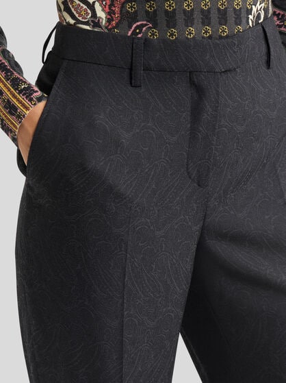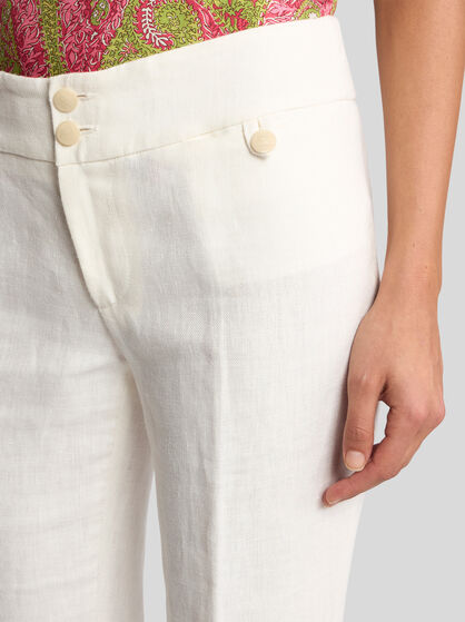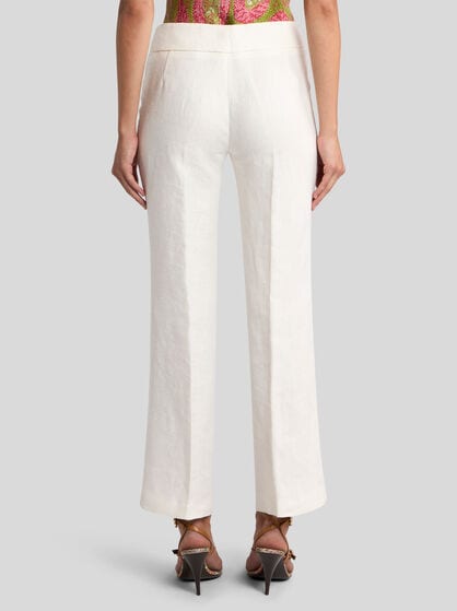 세심한 디테일과 다양한 색상으로 어떤 스타일에도 완벽하게 어울리는 ETRO 여성 팬츠를 만나보세요. 줄무늬와 물방울 무늬가 세로로 늘어진 팔라조 팬츠부터 현대적인 플로럴 프린트 큐롯까지 모든 여성의 니즈를 충족하는 ETRO의 바지 컬렉션은 페이즐리와 옵티컬 패턴이 수놓아진 청바지, 페이즐리 프린트의 실크 팬츠, 세련되면서도 캐주얼한 룩을 연출할 수 있는 ETRO 반바지와 체크 팬츠 등 다양한 제품군을 선보입니다. 이 컬렉션은 사이드 밴드, 플로럴 프린트, 패치워크 및 자카드 소재의 팬츠로 우아함을 더하여 유니크한 스타일을 원하시는 분께 안성맞춤입니다. 이 팬츠와 에트로 실크 재킷을 함께 매치하면 우아하고 세련된 룩을 완성할 수 있으며, 플레어 팬츠 또는 스트레이트 팬츠의 옵션이 있습니다. 컬렉션을 확인하여 자수 탑, 티셔츠 또는 페이즐리 실크 블라우스와 함께 연출할 수 있는 완벽한 팬츠를 찾아보세요.