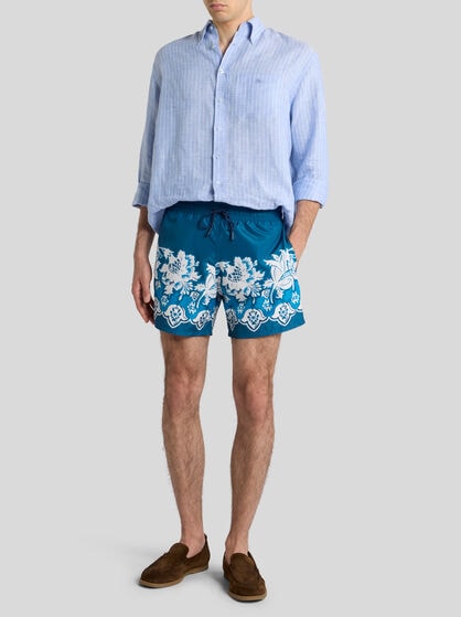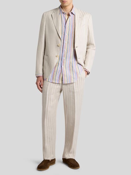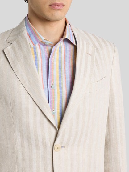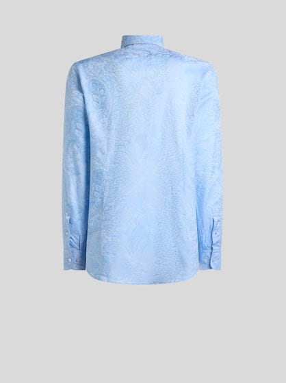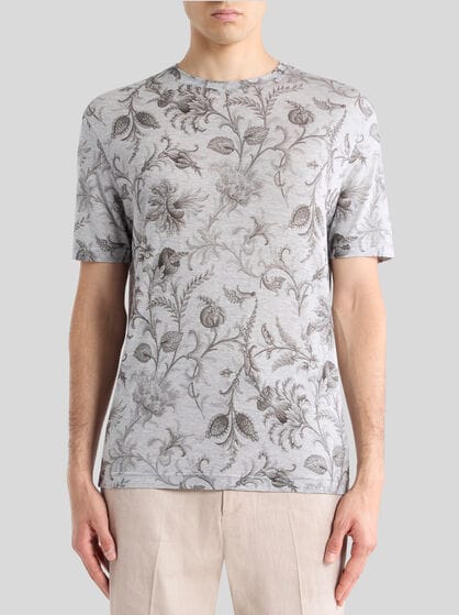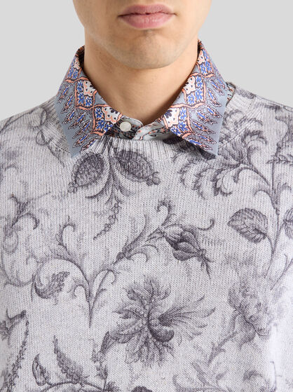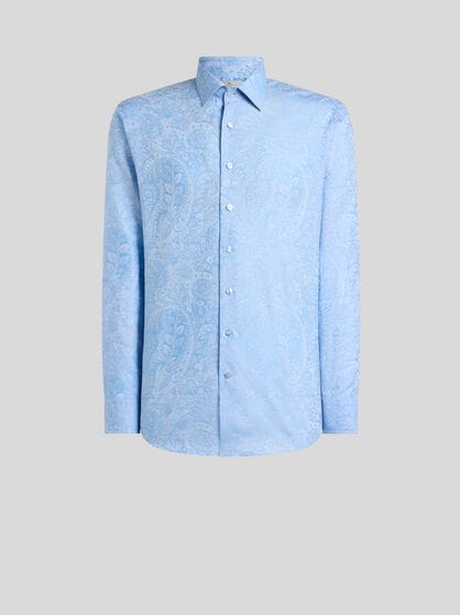 Transform your wardrobe with ETRO men’s clothing. Explore a wide selection of garments, from casual to elegant, to adapt to any occasion. Silk and cotton shirts with stripes or archive prints are perfect for an informal look to combine with a bomber jacket or a sophisticated leather jacket for an added touch of class. If you are looking for uncompromising elegance, check out ETRO’s double-breasted jackets which create an impeccable outfit when combined with trousers with tucks or a side band. Sweatshirts and jumpers embellished by prints and embroidery are perfect for sporty looks; wear them with jeans or velvet trousers for a touch of sophistication at any time of day. Choose from our selection for a versatile wardrobe which blends casual and elegant clothing, ensuring a unique style for every occasion always. Discover our range of sporty clothing and elegant homewear.
