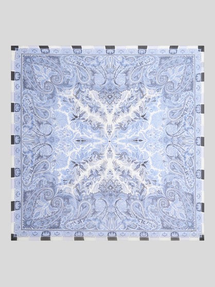 Explore the ETRO women's scarf collection. For a sleek and sophisticated look, use a soft silk scarf with an elaborate Paisley pattern, blending it with a light-coloured dress for a lively touch. For a casual-chic look, opt for a light, coloured scarf to tie around your neck or use as a hair band. Show off your style at its best by choosing a daring contrast or subtle co-ordination with the colours of your outfit. Tie a silk scarf to your favourite bag for a touch of elegance and personality, instantly transforming an everyday accessory into a truly unique look. Experiment with different scarf knotting techniques to create a variety of styles and adapt each piece to your unique personality. Renew your wardrobe with ETRO's iconic accessories and experiment with the multi-versatility of these alluring scarves and foulards.