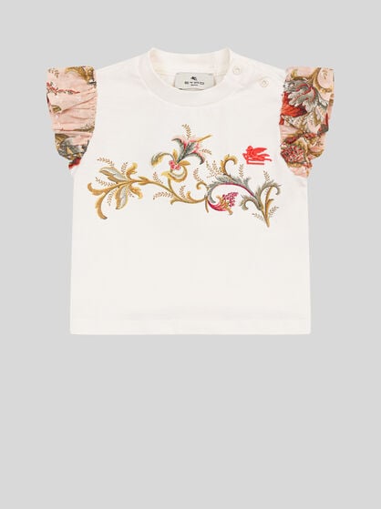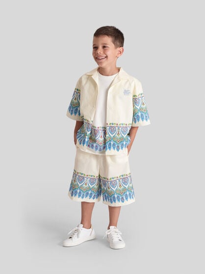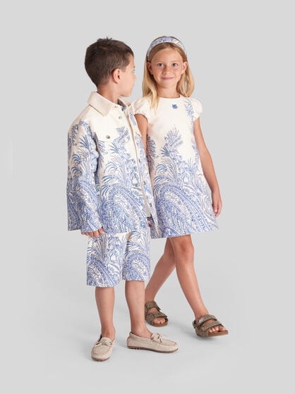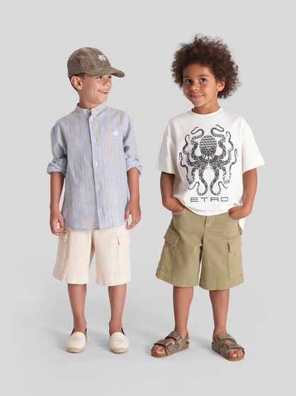 ETRO’s distinctive style also extends to the kid’s selection. Find the perfect outfit for school, leisure days out and special occasions in our refined collection of clothing, footwear and accessories. From the tender selection for newborns and babies to welcome gift sets through to complete comfort and stylistic details for the youngsters of the family: discover ETRO’s boys and girls fashion, where quality entwines with creativity for unique and unforgettable looks. Immerse yourself in the magical world of Paisley and floral prints and add a touch of elegance and joy to the little one’s wardrobes with the brand's iconic patterns. Explore the creative and imaginative world of Pegaso and make your kid's days truly unique with refined and vibrant details.