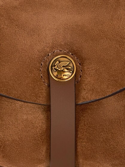 Medium brown suede Etro Pony Bag with handle of SS26 women's runway collection