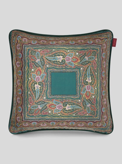 ETRO'S decorative cushions are the perfect accessory to make every corner of your home truly special. The removable covers are adorned with tassels, embroideries, fringes and pompoms and feature floral patterns and ETRO'S signature Paisley designs. Pamper yourself with the exquisite softness of velvet and silk.