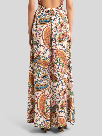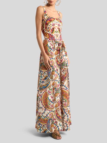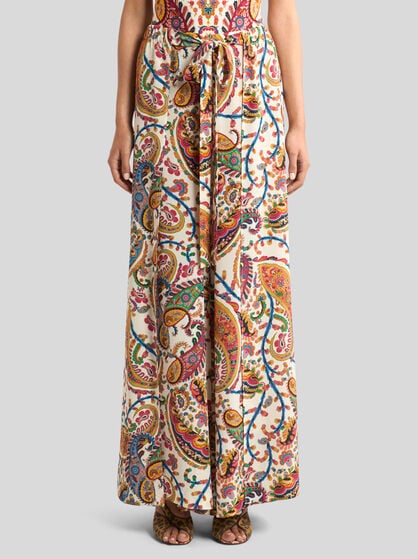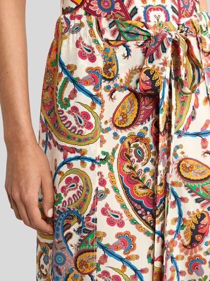 The Maison has designed a clothing collection for the ETRO woman, comprising jacquard jackets with a feminine cut, flowing silk shirts and palazzo trousers. Long dresses in floral prints, mini skirts or wrap skirts and shirt dresses are the leitmotif of a fashion story told through fabrics such as silk, cotton and linen.