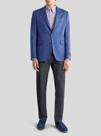 Transform your wardrobe with ETRO men’s clothing. Explore a wide selection of garments, from casual to elegant, to adapt to any occasion. Silk and cotton shirts with stripes or archive prints are perfect for an informal look to combine with a bomber jacket or a sophisticated leather jacket for an added touch of class. If you are looking for uncompromising elegance, check out ETRO’s double-breasted jackets which create an impeccable outfit when combined with trousers with tucks or a side band. Sweatshirts and jumpers embellished by prints and embroidery are perfect for sporty looks; wear them with jeans or velvet trousers for a touch of sophistication at any time of day. Choose from our selection for a versatile wardrobe which blends casual and elegant clothing, ensuring a unique style for every occasion always. Discover our range of sporty clothing and elegant homewear.