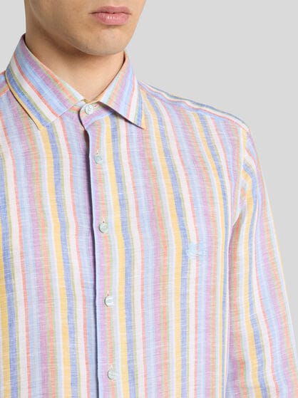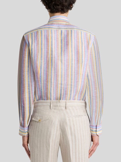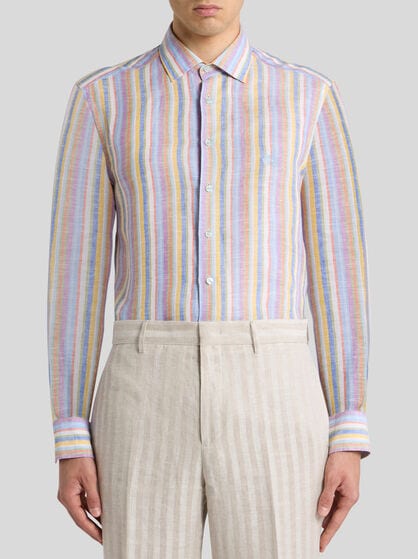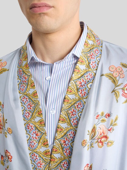 Transform your wardrobe with ETRO men’s clothing. Explore a wide selection of garments, from casual to elegant, to adapt to any occasion. Silk and cotton shirts with stripes or archive prints are perfect for an informal look to combine with a bomber jacket or a sophisticated leather jacket for an added touch of class. If you are looking for uncompromising elegance, check out ETRO’s double-breasted jackets which create an impeccable outfit when combined with trousers with tucks or a side band. Sweatshirts and jumpers embellished by prints and embroidery are perfect for sporty looks; wear them with jeans or velvet trousers for a touch of sophistication at any time of day. Choose from our selection for a versatile wardrobe which blends casual and elegant clothing, ensuring a unique style for every occasion always. Discover our range of sporty clothing and elegant homewear.