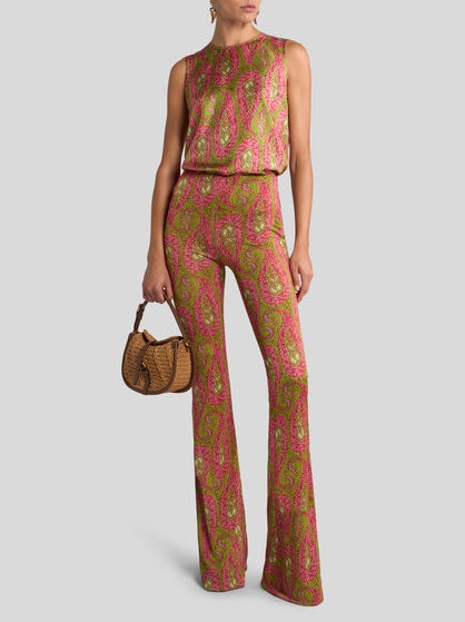 The ETRO women’s clothing collection encapsulates elegance and feminine style. Jacquard jackets in high quality fabrics are iconic in style with a feminine cut that highlights the silhouette, guaranteeing comfort and sophistication. The silk shirts with sinuous lines and well-finished details are coloured by Paisley designs while the palazzo trousers, with their width and fluid design, offer a feeling of lightness and style. Long dresses with floral prints capture the Maison’s quintessential style while short or wrap skirts featuring Pegaso embroidery add a touch of vivacity and dynamism to the wardrobe. Coats and outerwear with their elegant, contemporary design are a must-have. The Maison carefully selects high quality fabrics such as silk, cotton, linen, wool and cashmere. These fabrics make each garment in the collection an investment in style that lasts over time.