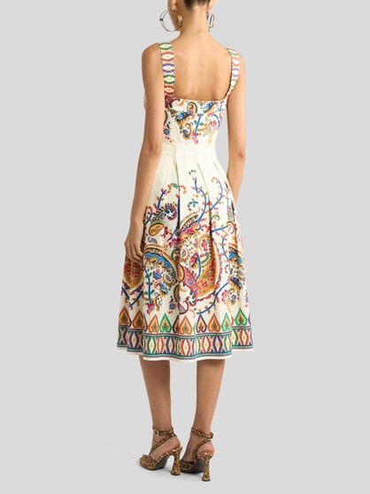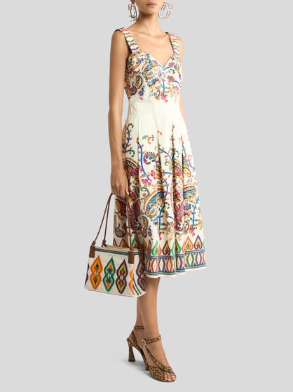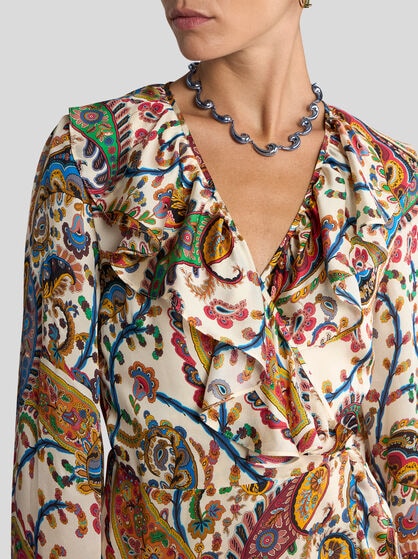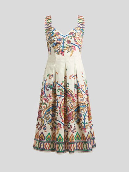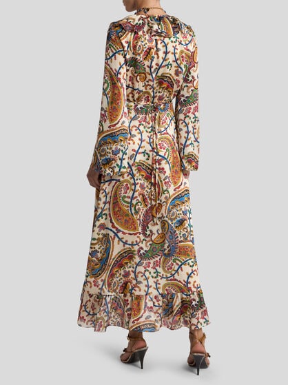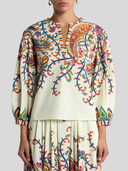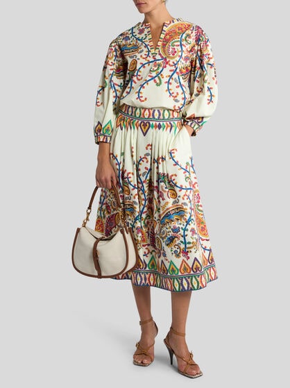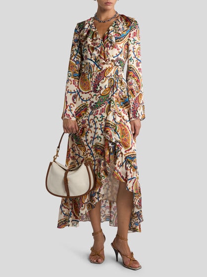 The ETRO women’s clothing collection encapsulates elegance and feminine style. Jacquard jackets in high quality fabrics are iconic in style with a feminine cut that highlights the silhouette, guaranteeing comfort and sophistication. The silk shirts with sinuous lines and well-finished details are coloured by Paisley designs while the palazzo trousers, with their width and fluid design, offer a feeling of lightness and style. Long dresses with floral prints capture the Maison’s quintessential style while short or wrap skirts featuring Pegaso embroidery add a touch of vivacity and dynamism to the wardrobe. Coats and outerwear with their elegant, contemporary design are a must-have. The Maison carefully selects high quality fabrics such as silk, cotton, linen, wool and cashmere. These fabrics make each garment in the collection an investment in style that lasts over time.