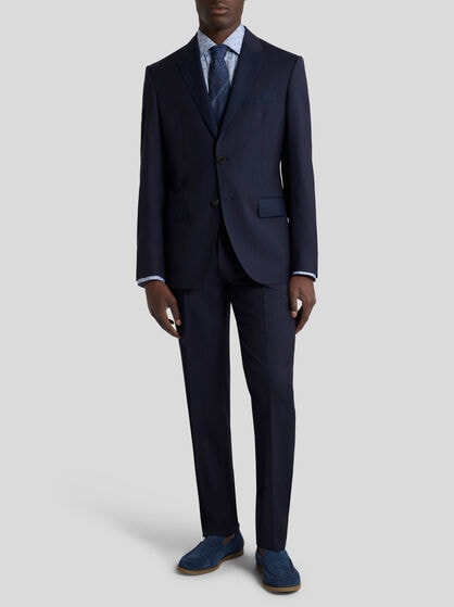 ETRO men’s suits are made of high quality fabrics like fine wool silk and elegant velvet, attentively worked to satisfy the most sophisticated tastes. Blue suits embody timeless elegance and class, while pinstriped models have a modern silhouette and a flawless fit with the high quality fabrics used in their creation. These suits are the perfect choice for business meetings, formal occasions or elegant evenings and can be combined with elegant wool coats or trench coats in Paisley technical fabric to complete the look. Reflecting the brand’s passion for tailored perfection, the ETRO men’s suits collection is a celebration of male fashion and offers a wide selection of options suitable for any occasion.