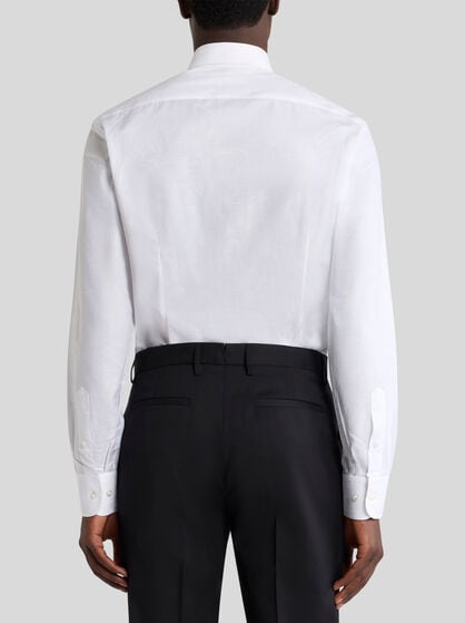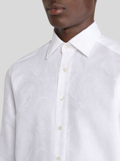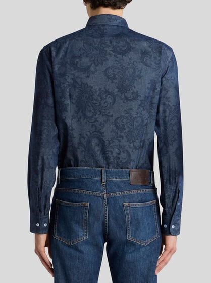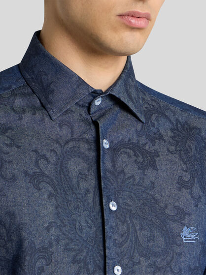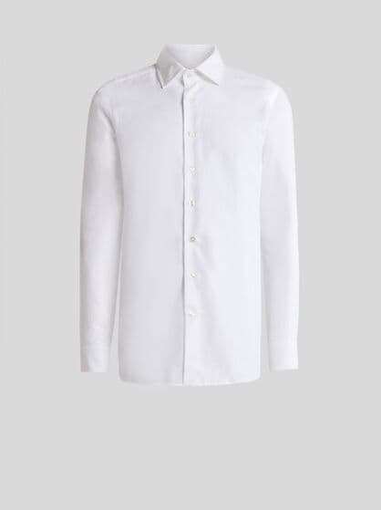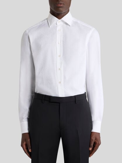 The ETRO shirt collection for men is a fusion of tradition and modernity. The two-fabric striped shirts are the perfect embodiment of ETRO style and are truly alluring when combined with bermuda shorts and espadrilles. Alternatively, the floral-patterned silk shirts combined with jackets from the collection will accompany you with allure during workdays. If you are looking for a more casual look, choose from the mandarin collar models or the slim fit shirts. The linen shirts are a real must-have for the summer wardrobe while the short-sleeved shirts add a touch of freshness to your style. If you want to play with proportions, choose an oversize shirt to wear with a pair of jacquard denim jeans. ETRO men’s shirts are designed to enhance your personality and to create your own unique style.