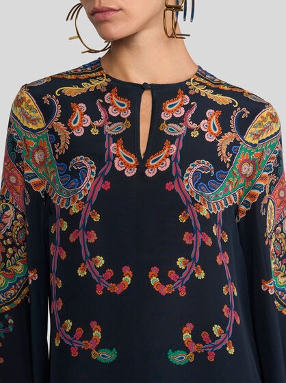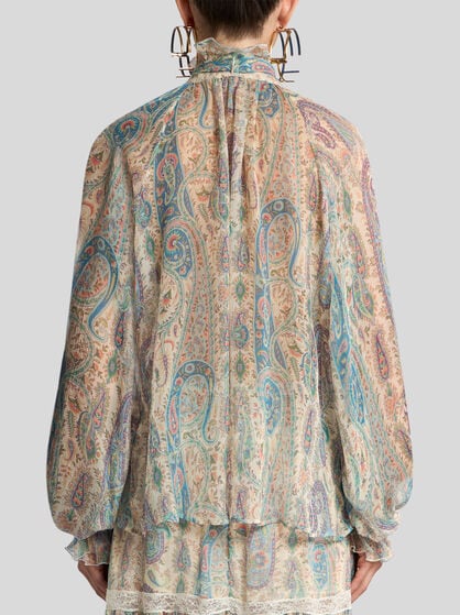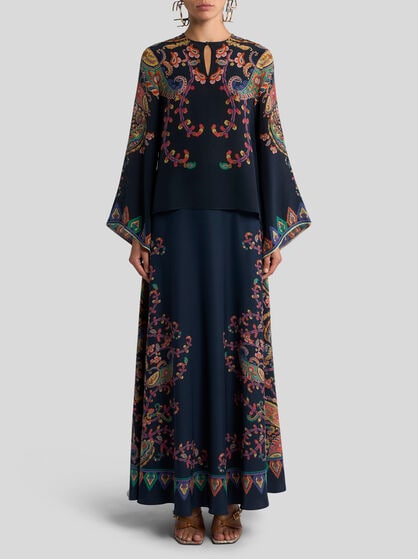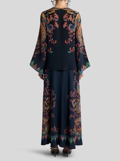 The ETRO women’s clothing collection encapsulates elegance and feminine style. Jacquard jackets in high quality fabrics are iconic in style with a feminine cut that highlights the silhouette, guaranteeing comfort and sophistication. The silk shirts with sinuous lines and well-finished details are coloured by Paisley designs while the palazzo trousers, with their width and fluid design, offer a feeling of lightness and style. Long dresses with floral prints capture the Maison’s quintessential style while short or wrap skirts featuring Pegaso embroidery add a touch of vivacity and dynamism to the wardrobe. Coats and outerwear with their elegant, contemporary design are a must-have. The Maison carefully selects high quality fabrics such as silk, cotton, linen, wool and cashmere. These fabrics make each garment in the collection an investment in style that lasts over time.