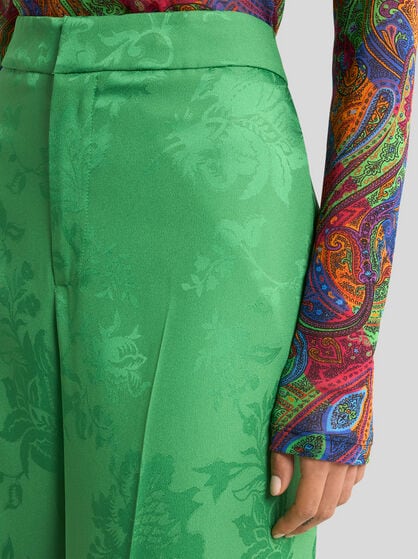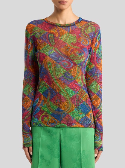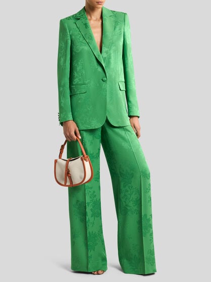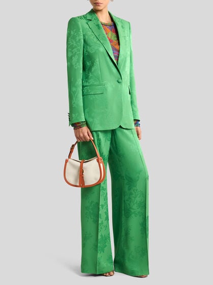 The ETRO women’s clothing collection encapsulates elegance and feminine style. Jacquard jackets in high quality fabrics are iconic in style with a feminine cut that highlights the silhouette, guaranteeing comfort and sophistication. The silk shirts with sinuous lines and well-finished details are coloured by Paisley designs while the palazzo trousers, with their width and fluid design, offer a feeling of lightness and style. Long dresses with floral prints capture the Maison’s quintessential style while short or wrap skirts featuring Pegaso embroidery add a touch of vivacity and dynamism to the wardrobe. Coats and outerwear with their elegant, contemporary design are a must-have. The Maison carefully selects high quality fabrics such as silk, cotton, linen, wool and cashmere. These fabrics make each garment in the collection an investment in style that lasts over time.