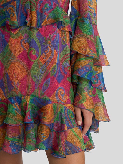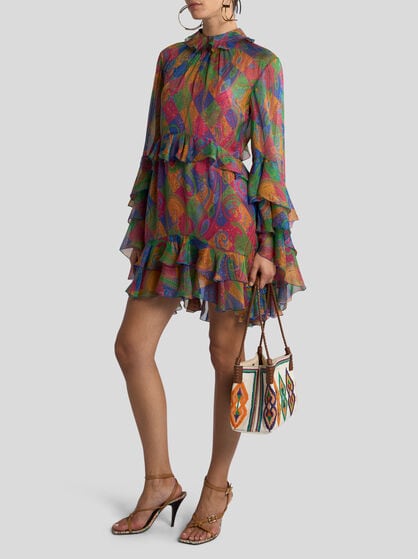 The ETRO women’s clothing collection encapsulates elegance and feminine style. Jacquard jackets in high quality fabrics are iconic in style with a feminine cut that highlights the silhouette, guaranteeing comfort and sophistication. The silk shirts with sinuous lines and well-finished details are coloured by Paisley designs while the palazzo trousers, with their width and fluid design, offer a feeling of lightness and style. Long dresses with floral prints capture the Maison’s quintessential style while short or wrap skirts featuring Pegaso embroidery add a touch of vivacity and dynamism to the wardrobe. Coats and outerwear with their elegant, contemporary design are a must-have. The Maison carefully selects high quality fabrics such as silk, cotton, linen, wool and cashmere. These fabrics make each garment in the collection an investment in style that lasts over time.