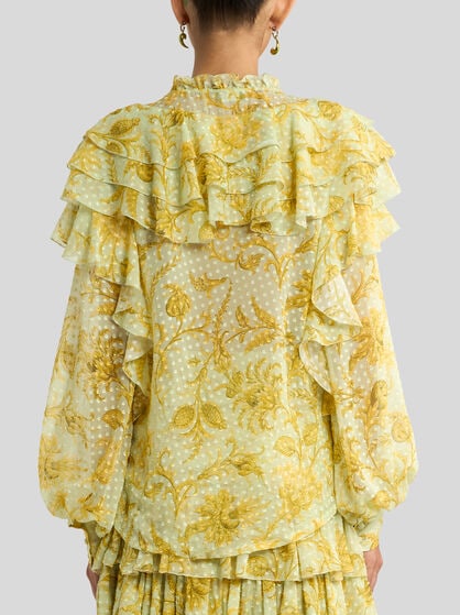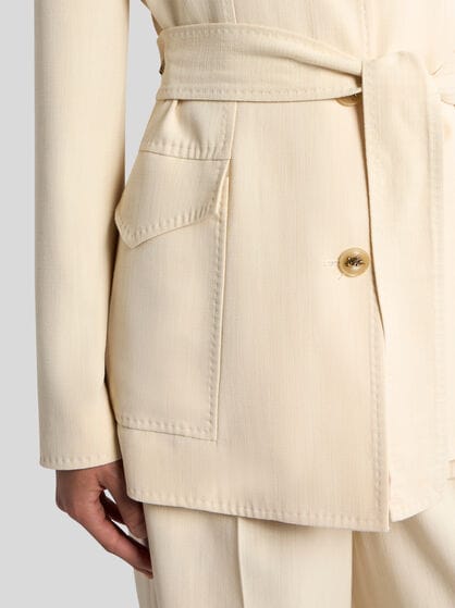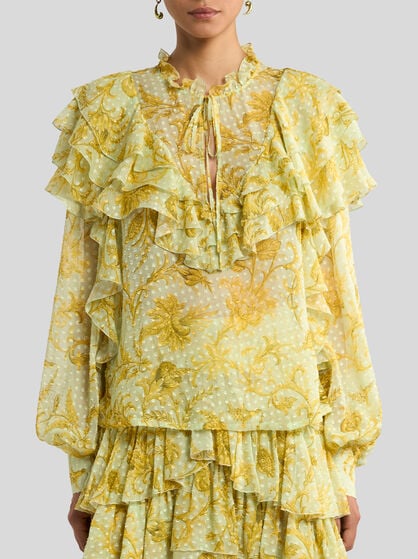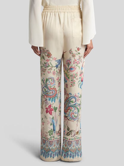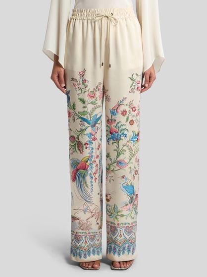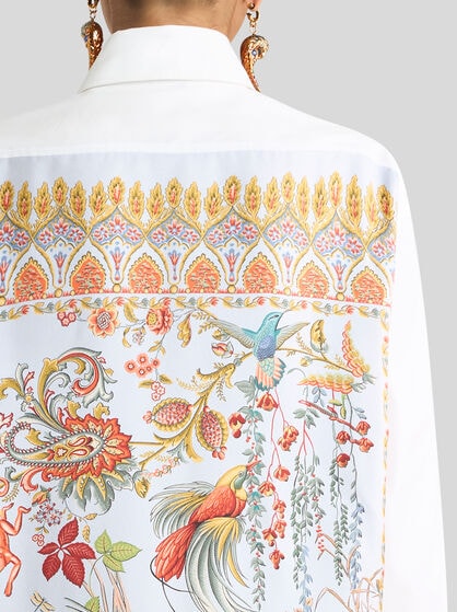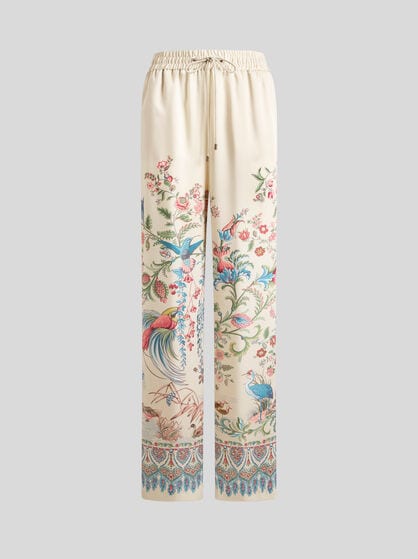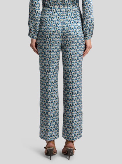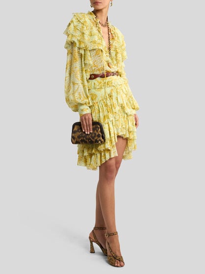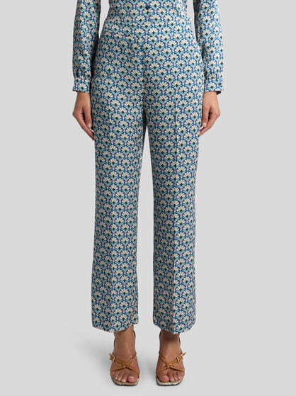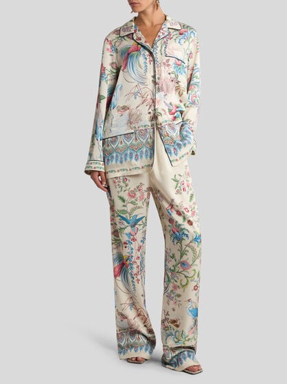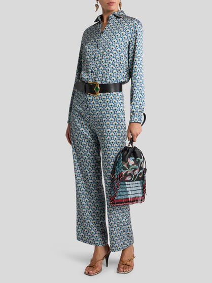 The ETRO women’s clothing collection encapsulates elegance and feminine style. Jacquard jackets in high quality fabrics are iconic in style with a feminine cut that highlights the silhouette, guaranteeing comfort and sophistication. The silk shirts with sinuous lines and well-finished details are coloured by Paisley designs while the palazzo trousers, with their width and fluid design, offer a feeling of lightness and style. Long dresses with floral prints capture the Maison’s quintessential style while short or wrap skirts featuring Pegaso embroidery add a touch of vivacity and dynamism to the wardrobe. Coats and outerwear with their elegant, contemporary design are a must-have. The Maison carefully selects high quality fabrics such as silk, cotton, linen, wool and cashmere. These fabrics make each garment in the collection an investment in style that lasts over time.