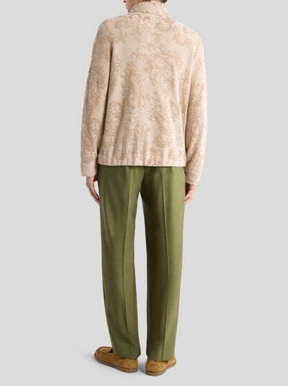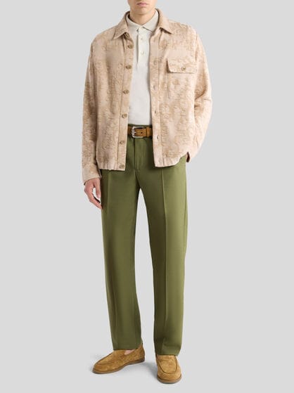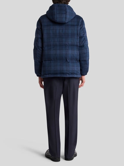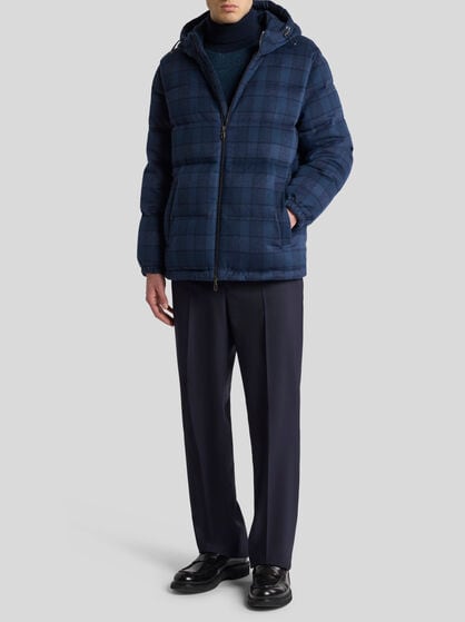 ETRO men’s coats and outerwear captures the different facets of the male world. Embellished by refined embroidered details and made of high quality wool and cashmere knit, the coats encapsulate the elegance of Made in Italy style. The collection includes the classic safari jacket, bomber jackets and biker jackets as well as trench coats, jeans jackets and crafted leather jackets. For special occasions, discover a selection of elegant formal coats that add a touch of allure to the male wardrobe. If you are looking for a truly unique style, try a poncho cape or a waterproof jacket; choose from the down jackets, perfect to wear with jacquard jeans or other looks. Get captivated by the houndstooth coats, bomber jackets in wool or fur and bomber jackets with the ETRO and Pegaso logo. The men’s collection of coats and outerwear is designed to enhance style and personality.