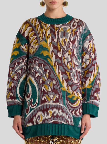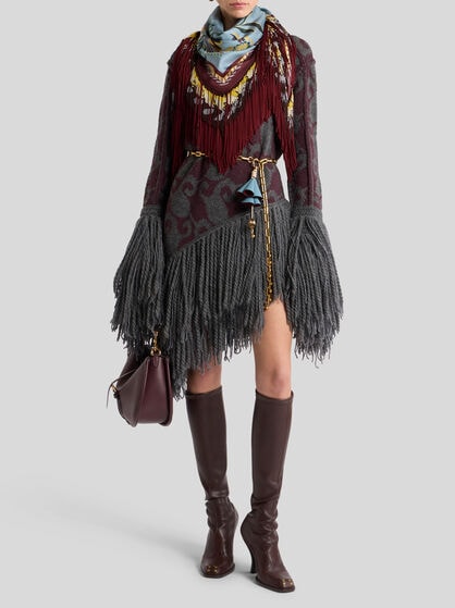 The women's knitwear collection is now available in the ETRO Sales. Cashmere and wool yarns offer allure and comfort without sacrificing on the elegance of jacquard textures and floral prints. Contrasting fringes, inlays and embroidery converge in a collection where style is the key.