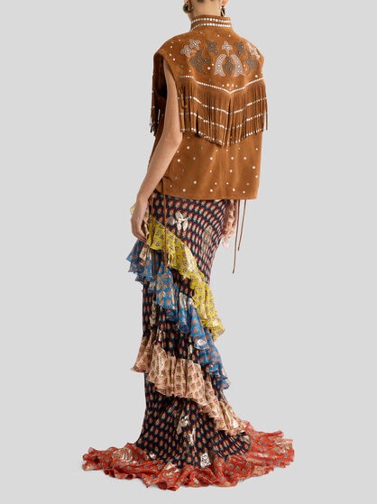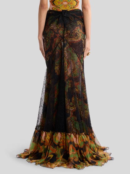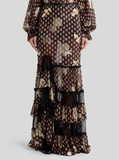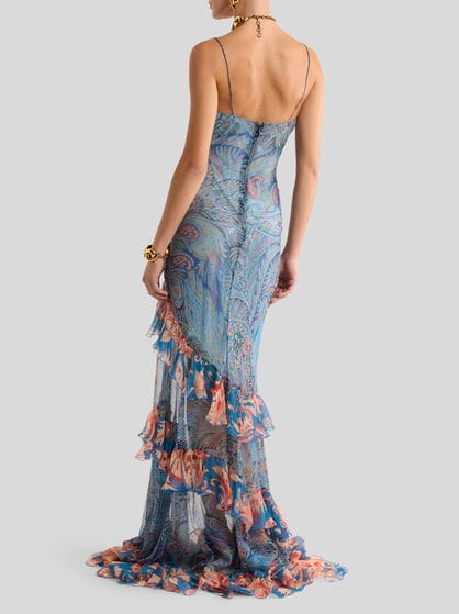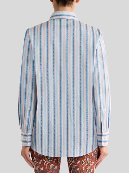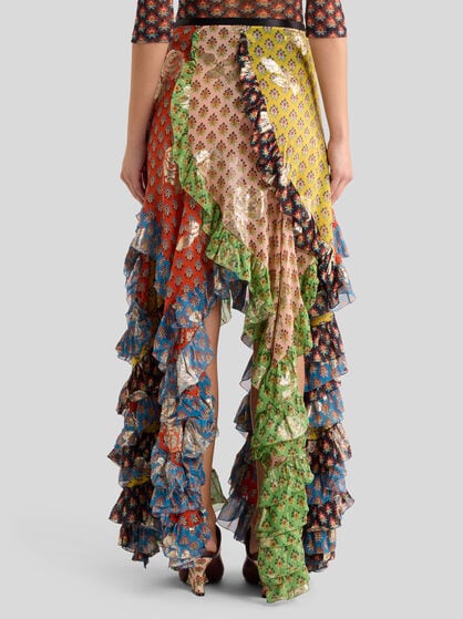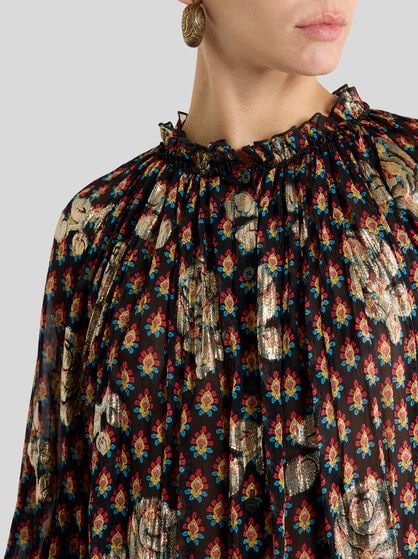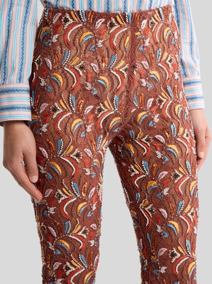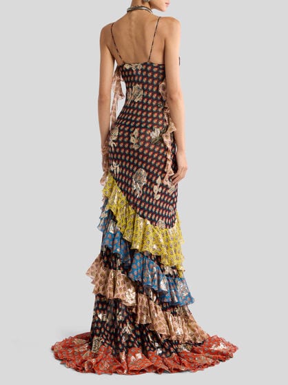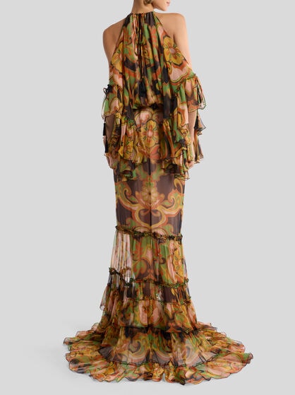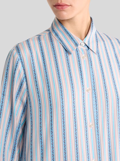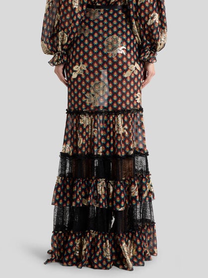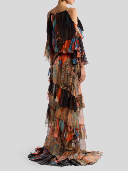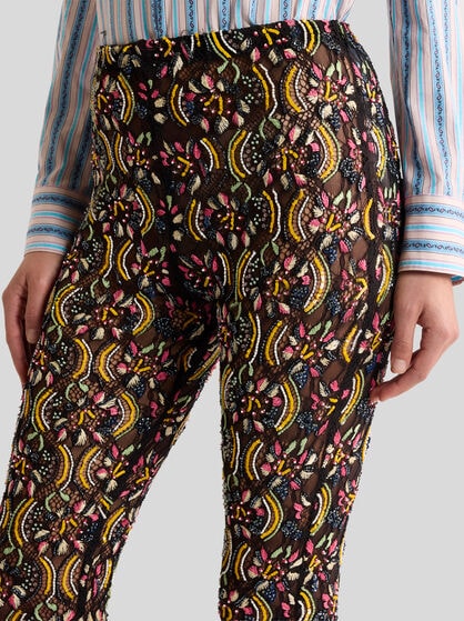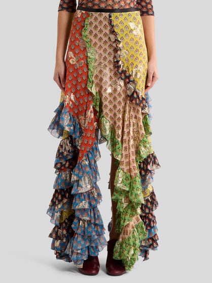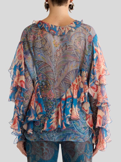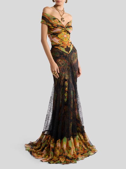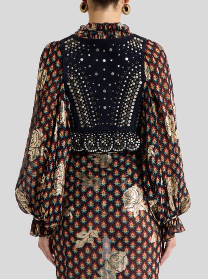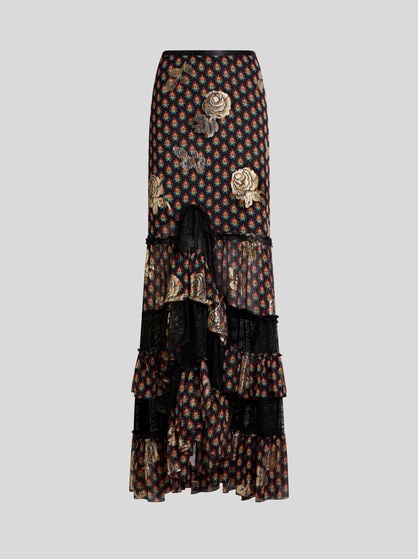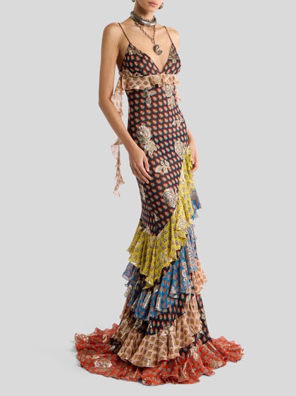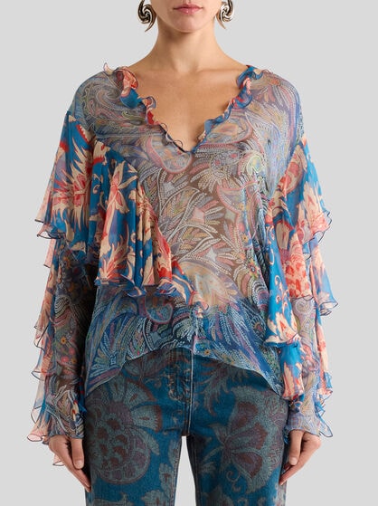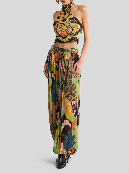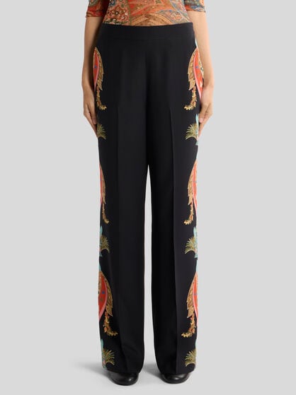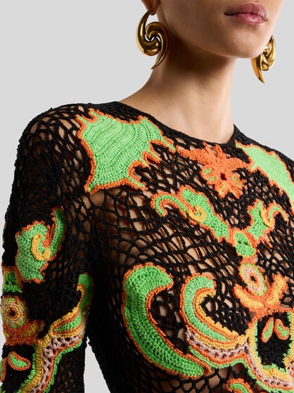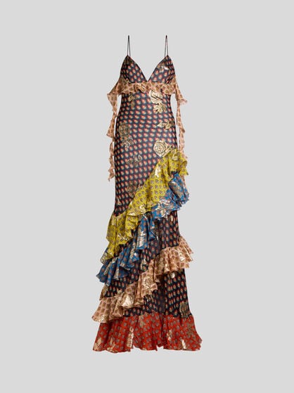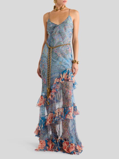 The ETRO women’s clothing collection encapsulates elegance and feminine style. Jacquard jackets in high quality fabrics are iconic in style with a feminine cut that highlights the silhouette, guaranteeing comfort and sophistication. The silk shirts with sinuous lines and well-finished details are coloured by Paisley designs while the palazzo trousers, with their width and fluid design, offer a feeling of lightness and style. Long dresses with floral prints capture the Maison’s quintessential style while short or wrap skirts featuring Pegaso embroidery add a touch of vivacity and dynamism to the wardrobe. Coats and outerwear with their elegant, contemporary design are a must-have. The Maison carefully selects high quality fabrics such as silk, cotton, linen, wool and cashmere. These fabrics make each garment in the collection an investment in style that lasts over time.