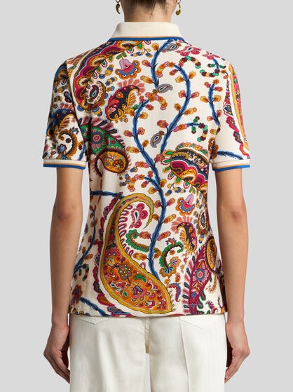 ETRO sweatshirts and T-shirts embody the increasingly contemporary and iconic spirit of fashion. Explore our varied selection: striped T-shirts for a classic look, T-shirts with 3/4 length sleeves for a touch of elegance, and solid colour for timeless versatility. Women’s T-shirts with silk details are the symbol of elegance. Have some playful fun with short-sleeved T-shirts, ruches, floral patterns or the captivating patchwork models. If you are looking for freshness, the floral printed T-shirts perfectly blend with leather jackets and vintage-effect jeans. Choose our must-have floral sweatshirts for a touch of femininity to wear with jacquard or plissé skirts. ETRO women’s sweatshirts ensure absolute comfort and style and are available with either a round neck or a hood. Explore our vast collection of ETRO T-shirts and sweatshirts and add a modern and iconic look to your style.