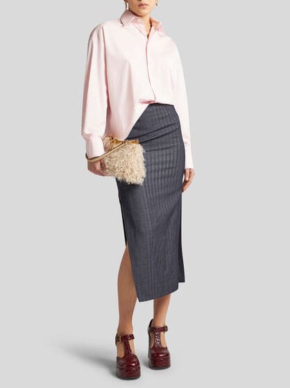 Las camisas de mujer ETRO son la encarnación de la feminidad y la elegancia. Las colecciones ofrecen una amplia gama de estampados únicos que se combinan de forma sorprendente. Las camisas de seda ocupan un lugar central en los armarios femeninos, disponibles en una variedad de estampados únicos, como rayas, lunares, Paisley y florales. Estos finos tejidos cobran vida con detalles como ruches, flecos e inserciones de encaje, que añaden un toque de sofisticación a cada prenda. El extraordinario diseño de las camisas ETRO incluye opciones como mangas cortas, perfectas para los días calurosos, y las camisas oversize para un look moderno y cómodo. Sea cual sea la ocasión, la colección de camisas ETRO para mujer combina a la perfección con vaqueros, faldas cortas o pantalones acampanados, gracias a su belleza y sofisticación atemporales.